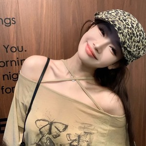 レトロ豹紋前進帽女春夏の個性的な顔のギャル鴨舌ベレー帽潮クール亜文化帽子