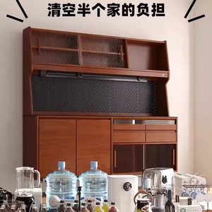 北欧実木サイドキャビネット家庭用小戸型多機能岩板茶水キャビネットレストランレトロ収納ロッカー