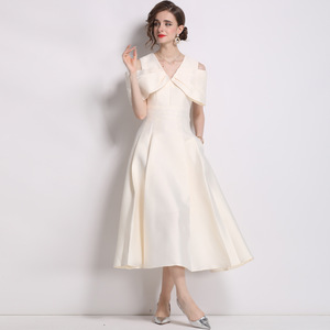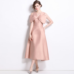 花嫁ドレス高級感姉妹服女神範純色が痩せているサテンの中のロング丈の修身ワンピース夏