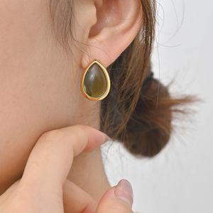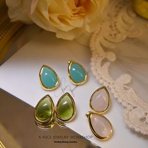 フランスのエレガントなイヤリングヨーロッパとアメリカのファッションドロップ型原石シルバーニードルイヤリング女性のニッチデザインハイエンドイヤリング