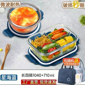 耐高温ガラス弁当箱サラリーマン加熱弁当箱学生保温弁当箱電子レンジ弁当箱携帯セット