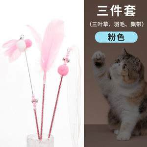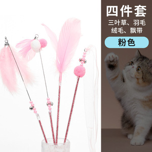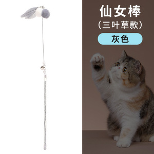 国境を越えた新しい猫のおもちゃ、猫の面白いスティック、妖精のスティック、自己刺激ベル、羽の長いポール、噛みつきにくいペット用品卸売