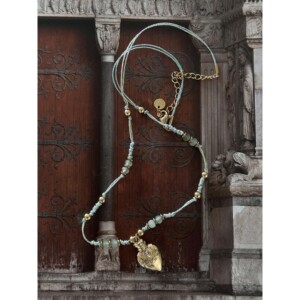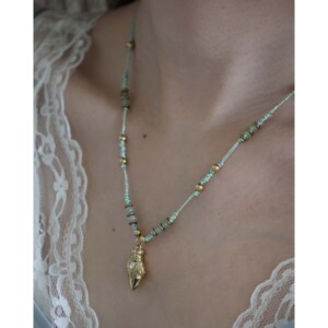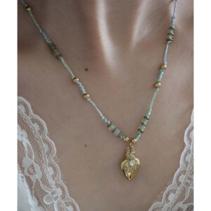 吊坠黄铜+扣头尾链钛钢+黑胆石+钛钢圆珠+白石染色+金丝线