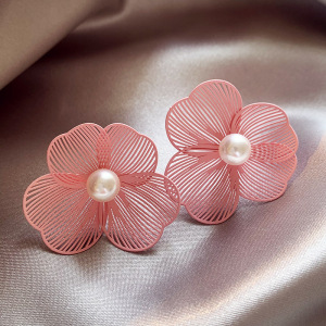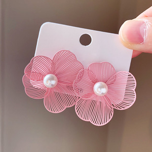 銀の針の甘い小さい清新な花の真珠のピアスの軽い豪華な風のイヤリングの百合の高級感の耳飾りの女性dingzhi