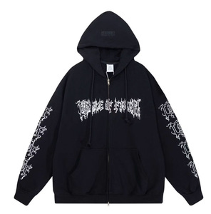 クロスボーダー欧米のトレンディなブランドレターロゴイエローシグネチャープリントのゆったりとしたジッパー付きスウェットシャツ、ジャケット、パーカー(男女兼用)
