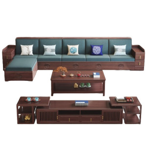 新中国式烏金木実木ソファーセット客間家具現代シンプル冬夏両用収納木ソファー