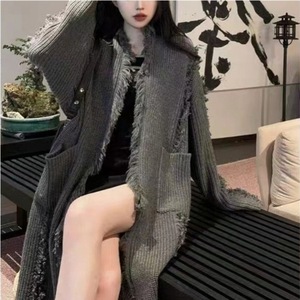 ニットのカーディガンの女性の秋の新型の怠惰な風の長いタイプのフリンジのデザイン感の柔らかいモチモチのファッションのゆったりしているセーターの女性のコート