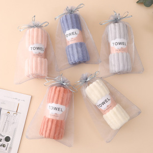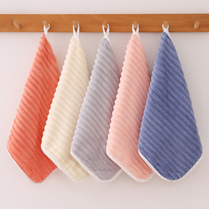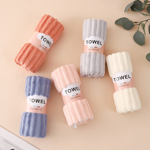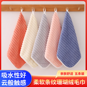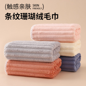 卸売ストライプ柄コーラルベルベットタオル キャンディストライプ柄 柔らかく吸水性があり、毛羽立ちなし、厚手の両面ベルベットハンドタオル