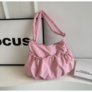 新型の2024大学生のしわの包みのカジュアルな韓国版のナイロンの布の包みの大容量の女性のカバンの斜め掛けのショルダーバッグのins