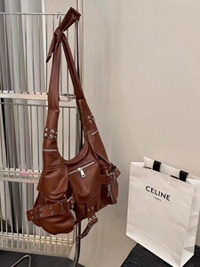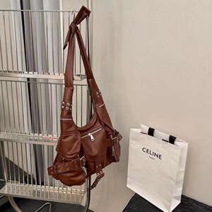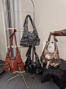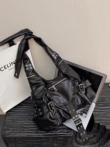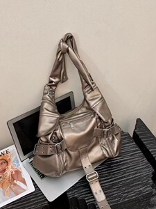 レトロ機関車革脇下バッグデザイン感パンクスタイルバッグマルチポケット大容量ハンドバッグ