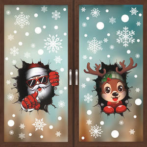 クリスマス装飾品雪花ガラスシールサンタクロースヘラジカ雪だるま静電貼りパーティー装飾窓貼り