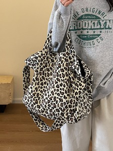 ヒョウ柄キャンバス通勤怠惰なスタイルバッグ女性のための 2024 外国貿易ファッションポータブル大容量シングルショルダーママクロスボディバッグ