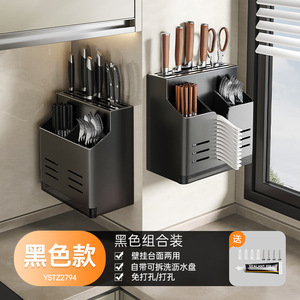 爾泡多機能箸収納ケース刃物棚一体式収納キッチン棚壁掛け式スプーン桶箸籠