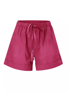 女性の夏の大きいサイズの純色のストラップのゴムバンドのポケットのカジュアルな半ズボン