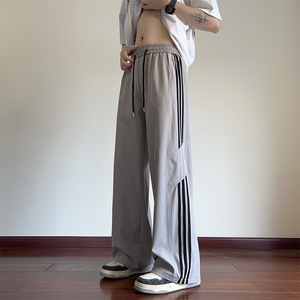 早秋のストライプの速乾の氷のズボンの男性の薄い金のゆったりしている広脚のスポーツのズボンのファッションのブランドのアメリカの青少年のカジュアルなズボン