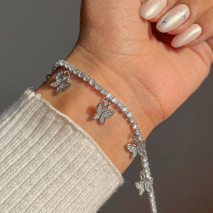 ヨーロッパとアメリカの越境電子商取引ジュエリーアマゾン人気セット合金蝶ペンダントネックレスダイヤモンドブレスレットリング女性用