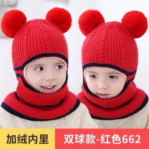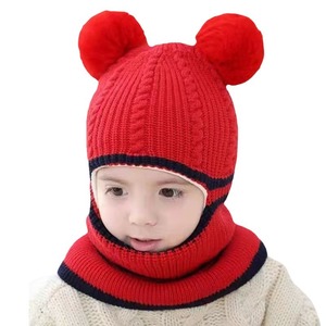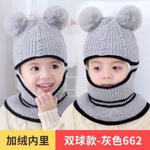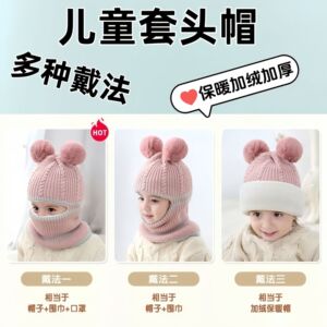 秋冬儿童帽子围脖套装围巾一体加厚针织帽男女宝宝保暖护耳套头帽