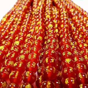 厂家直销批发天然玛瑙烫金diy散珠佛珠手链配件红玛瑙桶珠半成品
