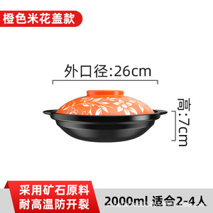オレンジ色の米花浅鍋2000mlは2 ~ 4人に適している