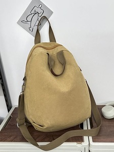 キャンバスの純色のシンプルなリュックサックのシンプルな女子大学生の多機能の斜め掛けバッグの大容量の元のsu三用のリュックサック