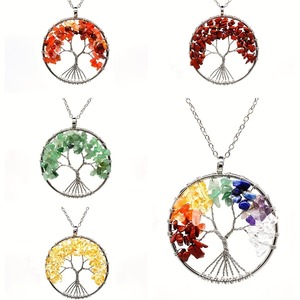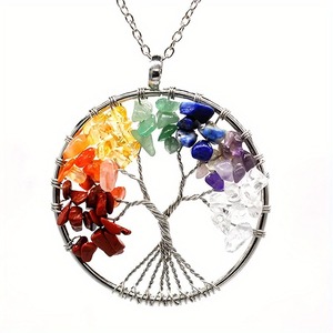 国境を越えた対外貿易天然砂利水晶生命樹ペンダント七彩天然石発財樹ネックレスメーカー直販