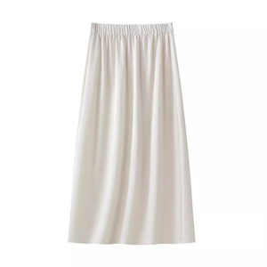 白いアセテートサテンスカート レディース 2025年新作 夏 ドレープ感のあるロングスカート 夏らしいエレガントなロングスカート
