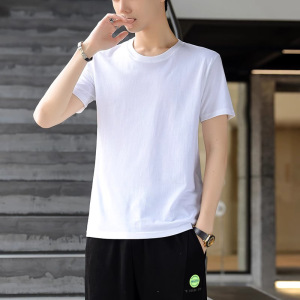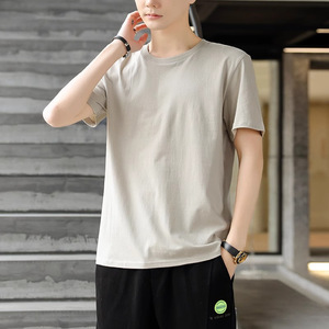 新疆長絨綿純綿半袖男性夏の新型男性服ゆるいカジュアル純色重ポンド上服tシャツ