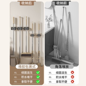 モップ壁掛けクリップモップモップフック穴なしモップホルダー神器トイレキッチンドア後物棚