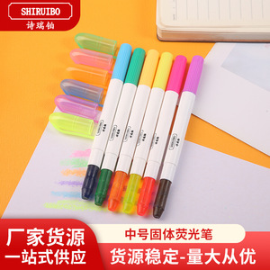 新型淡色系学生用中号固体蛍光ペン太く大容量学生重点マーカーペン