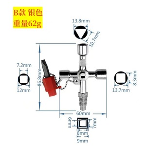 四合一電気制御盤車エレベータ十字キーレンチ水道メーターバルブキー内三角レンチ多目的