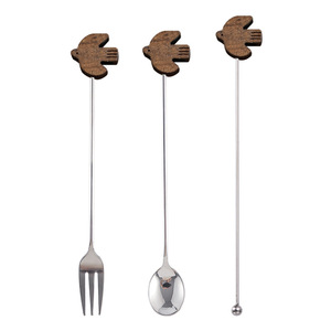 胡桃木果物フォークコーヒースプーン304コーヒーミルクティー蜂蜜棒氷スプーン甘いケーキ果物フォーク