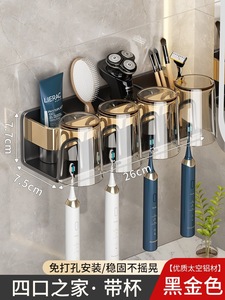 【ブラックゴールド】釘なし歯ブラシホルダー歯ブラシカップ (4人)