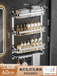 304ステンレスラックトイレ壁掛け式タオルラック浴室穴なし収納ラック一体ラック