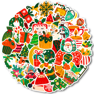 クリスマス漫画落書きステッカー50枚セット サンタクロースの靴下 雪だるま ギフトデコレーション素材ステッカー