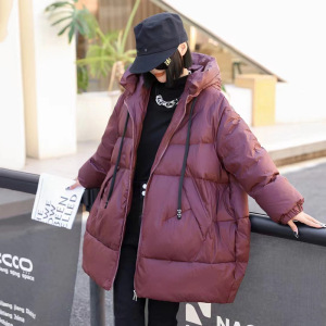 韓国版の中長タイプの帽子付きのジッパー付きのダウンジャケット女性は2024年に保温カジュアルな大バージョンの白鴨のダウンジャケットを厚くしました。