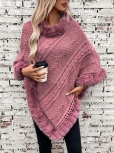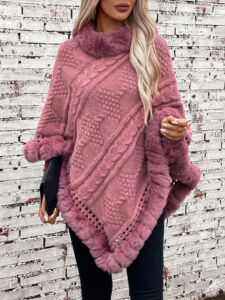 霧雨ルーズ大きいサイズ秋冬暖かい模造ウサギの毛皮の襟マント 2024 クロスボーダー新製品厚い麻セータージャケット