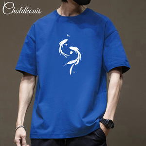 夏ルーズコットンアメリカンハイエンドハーフスリーブメンズ新しいトレンディシャツラウンドネック半袖ヘビーウェイト
