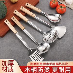 フライパンステンレス炒めシャベル家庭用実木ハンドルスプーン漏れスプーン線漏れシャベル調理器具5点セット