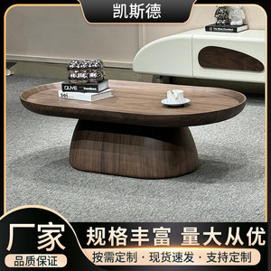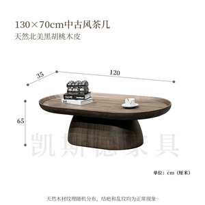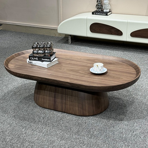 中古風日本式実木茶何客間家庭用小戸型デザイナー楕円北米黒胡桃木高級感
