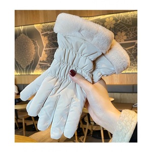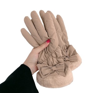 冬の保温手袋女子学生は綿のタッチパネルのダウン手袋を厚くして、自転車で防寒防風とダウンスキー手袋をします。