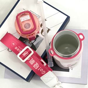 希楽保温カップ男女高颜値大容量水杯陶磁器ネット赤児童小学生ストロー運動カップ