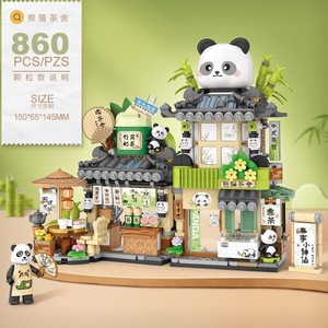 Lozミニ顆粒1382-83パンダ茶舎ベアーコーヒー折り畳み可能な街の風景子供のおもちゃの装飾品