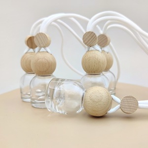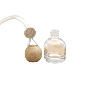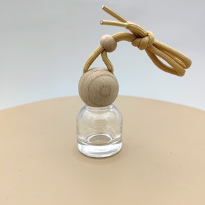 13 ミリリットルブナ材ラウンドカバー + 空ボトル車の香水ボトルペンダント空ボトルホームペンダントロープ色変更可能