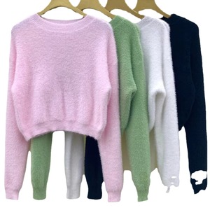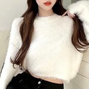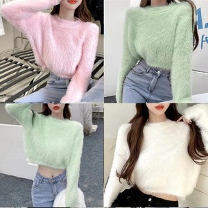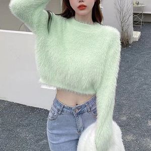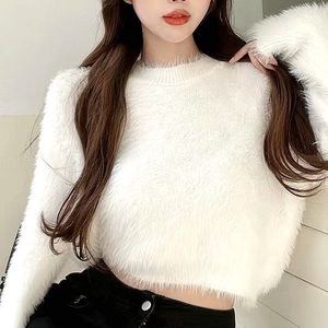 デザイン感が小さい人たちはミンクのベルベットの柔らかいモチモチのセーターの女性の秋冬の優しい風の短い長袖のニットの上着の潮をまねます。