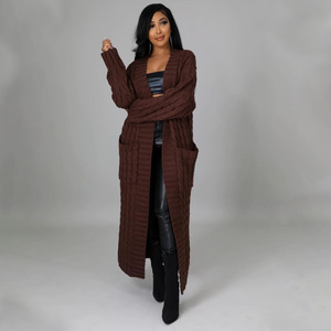 2025年秋冬新作アマゾン欧米風レディースファッションカーディガンカジュアル長袖セーターロング丈無地ジャケット