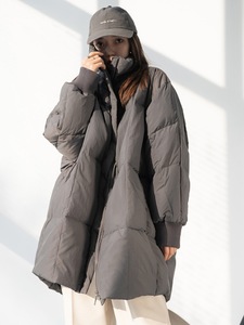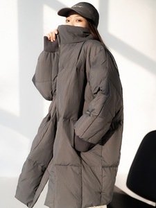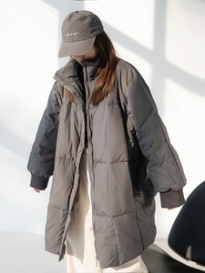 2025年新作女性用ダウンコットンジャケット、冬用韓国版ミドル丈コットンジャケット、ゆったりとした厚みのある膝丈コットンジャケット、トレンディなジャケット