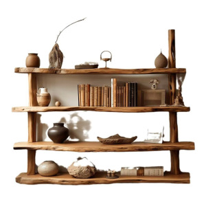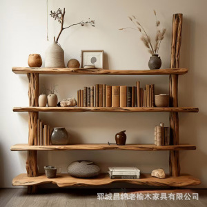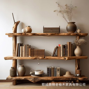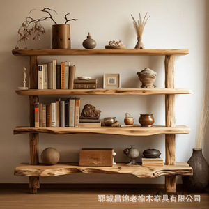 新中国式の古い楡木博古架家庭用リビングルームの屏風は杯のティーポットの展示棚の実木のアンティーク家具を遮断します。