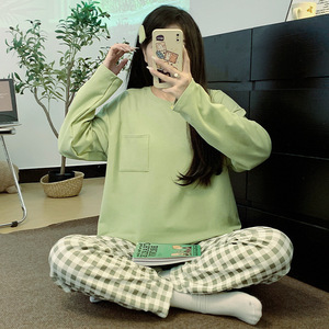 女性用パジャマ秋長袖春と秋の純粋な綿の女性のホーム服薄いスーツはプルオーバーの外で着用できます韓国スタイルの妖精スタイル