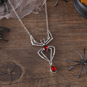 国境を越えて人気のハロウィーンパンクレトロなルビーのクモのネックレス暗黒ゴシック風が個性的なアクセサリーを誇張している