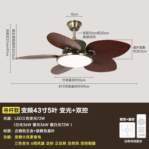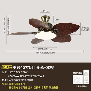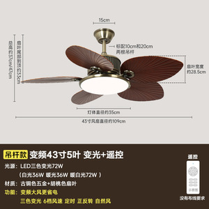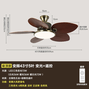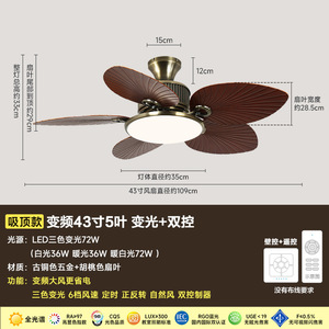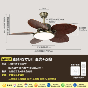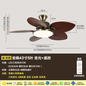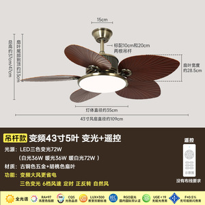 中世スタイルのファンランプ、東南アジアのリビングルーム、ダイニングルーム、寝室、南洋レトロファンランプ、アメリカンスタイルの家庭用インバーターシーリングファンランプ